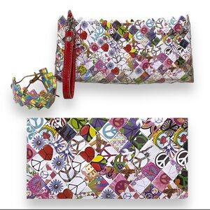 Nahui Ollin Upcycled Colorful Woven Peace Love Hippy Wristlet Clutch & Bracelet