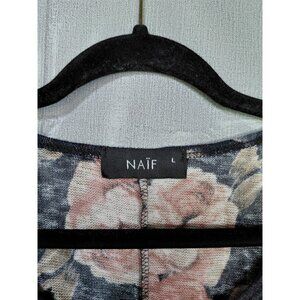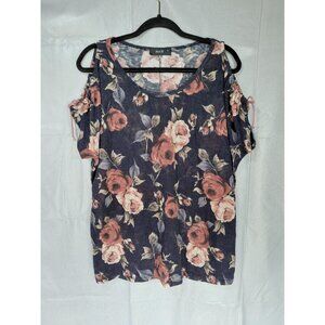 Naif Cold Shoulder Blouse Cinch Tie Large Romantic Whimsigoth Dark Floral