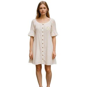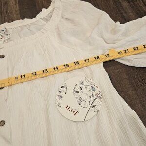 Naif Dress Women Medium White Button Up Prairie Half Flutter Sleeve Ruffle New