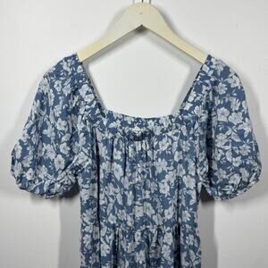 Naif Dress Women S Blue Floral Off the Shoulder Mini Puff Sleeve Cottage Peasant