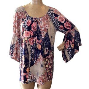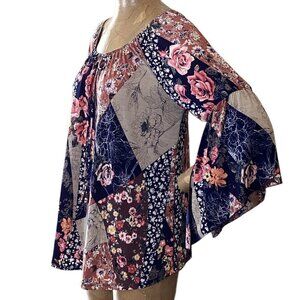 Description: Naif Mixed Print Floral Patchwork BOHO Peasant Top