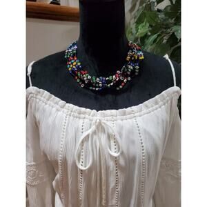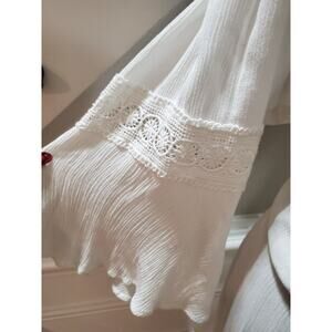 Naif Women's White 100% Rayon Could Shoulder Long Sleeve Knee Length Dress 2X.