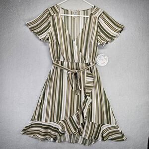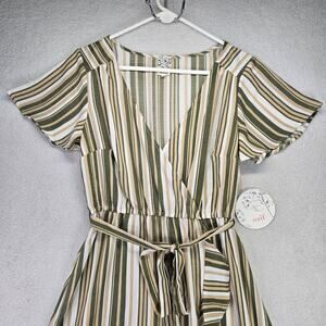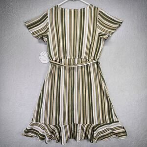 Description: Naif Wrap Mini Dress Womens Medium V Neck Tie Waist Flounce Hem Stripped New Boho CottageCore