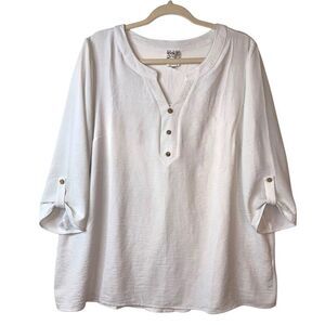 Naif 3/4 Sleeve Woman’s Light Gray V-Neck Flowy Lightweight Casual 1X