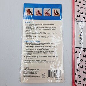 Create amazing nail art right at home. This set of nail polish guides will allow you to add butterflies, flowers, mustaches and more to your nails. Get creative and create your own works of nail art. Comes with a trio of decorative pinks and black nail files.