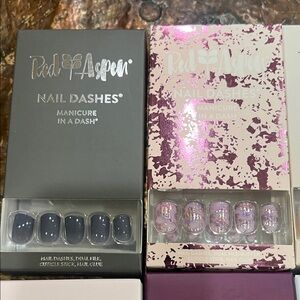 11 pairs of Red Aspen Press on nails! Explore the vibrant collection of Nail Dashes. Featuring a variety of colors including pink, purple, and cream, these nail dashes offer a quick and stylish manicure solution. Perfect for any occasion.