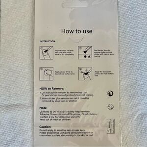 Fashion nail decals. Instructions for use on the back of the packaging. See photos for details. ****nails are not included.****
