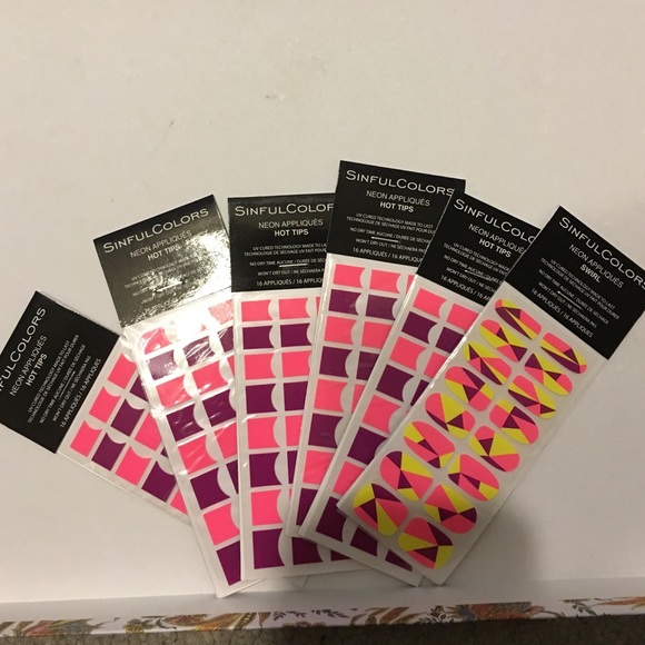 6 sheets of nail stickers! 5 Hot Tips, 1 Swirl. Edit: found another Swirl!