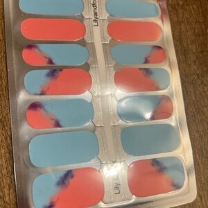 Coral, baby blue and navy marble nail wraps