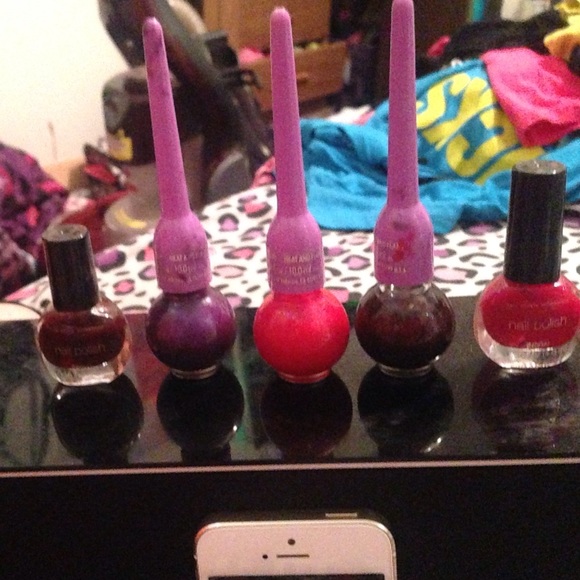 12 nail polish.(one is glow in the dark) Three nail art pens (used so not sure how much is left but there is still some in container) ! Two fake nail kits! Willing to trade!