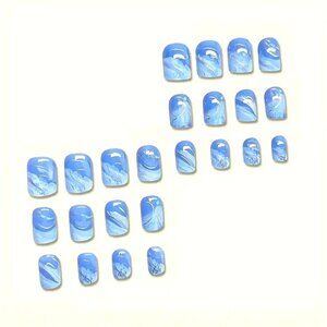 Nails Blue Wave Swirls Glitter Press On 24 Stylish Glam Trendy Reusable Sexy Fun