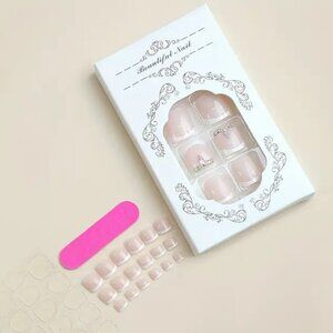 Nails French Manicure Fake Press On 24 Toenails Rhinestone Jewels Trendy Glam