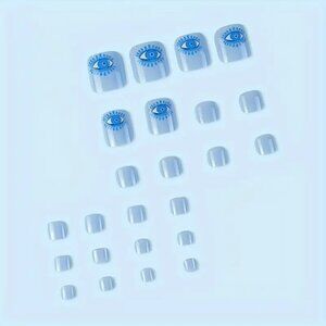 Nails Press On Toenails 24 Evil Third Eye Blue Short Style Fake Glossy Vacation