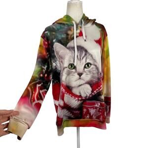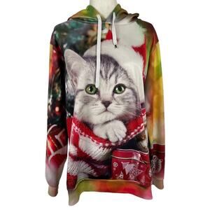 Nain Santa Kitties Ugly Christmas Graphic Sweater Hoodie Size Large/XL