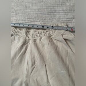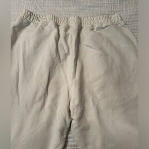 Unisex. Dust mark on front leg and dirt on jogger cuffs.