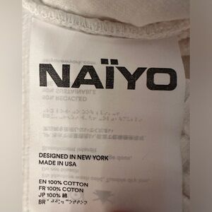 Naiyo is artwork through clothing. Often includes crown and braille in designs. Created by 2 brothers Roy & Adi Nachum. Braille on front says Naiyo and back say A O I.