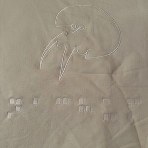 Naiyo is artwork through clothing. Often includes crown and braille in designs. Created by 2 brothers Roy & Adi Nachum. Braille on back says Nachum. Sold Out. Some small spots on front and a dust mark. Also mark on sleeve. All pictured. Unisex.
