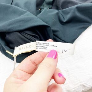 Naja Rafaella new with tags black one piece swimsuit strappy tie neck and tie ba