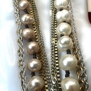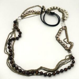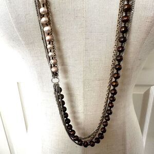 Nakamol brown and cream pearl multi strand long chain necklace