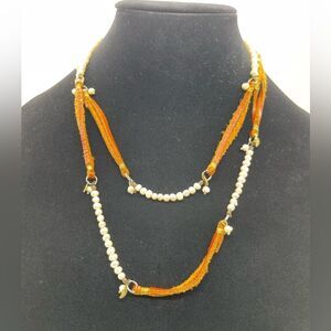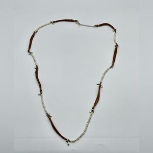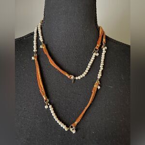 Nakamol Leather and Pearls Long Necklace adjustable to Dual Necklace