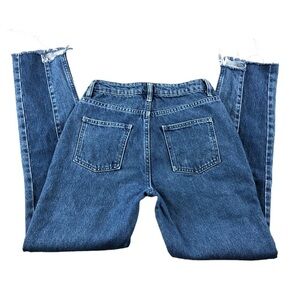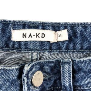 Na-kd Medium Wash Patch Work Raw Hem Front Seam High Rise Jeans, 100% Cotton