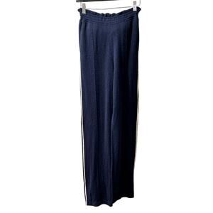 Naked Cashmere straight-leg “Dylan” track pants in navy with contrast side piping. Made from 100% soft cashmere with a slightly fuzzy knit texture. Features an elastic waistband and a relaxed lounge fit. Very good condition with no holes or flaws.