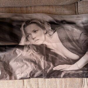 Unused Charcoal and blue Naked Cashmere lightweight knit cashmere shawl with Kate Moss print, 100% cashmere, One Size