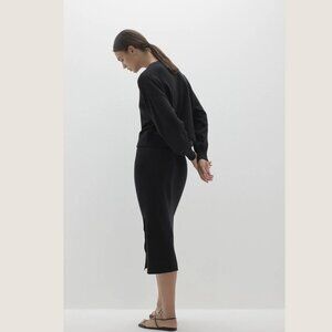 The perfect blend of cozy comfort and effortless style. This Naked Cashmere Maude Crewneck Sweater combines the soft, breathable feel of cotton (85%) with a touch of luxurious cashmere (15%), making it your ultimate staple for year-round wear. A sporty, casual fit in timeless black, this piece originally retailed for $150.00.