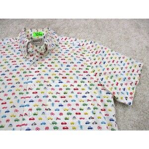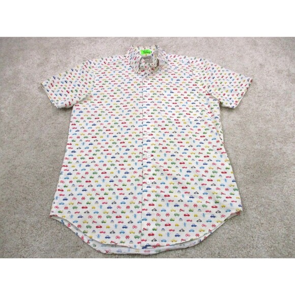 Up for sale is a - Naked & Famous Shirt Men Small Multicolor Cars All Over Print Casual Button Up *