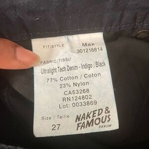 Naked & Famous Mens Ultralight Tech Denim Jeans 27 Max Style Typewriter Cloth