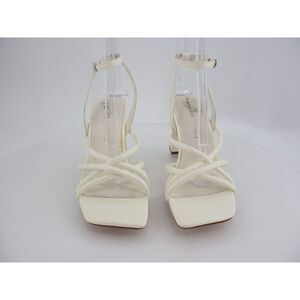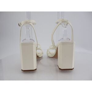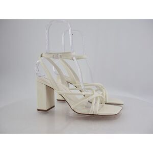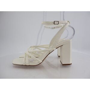 Naked Feet Mood Heeled Strappy Sandal Size 11 Ivory Vegan Patent Block Heel