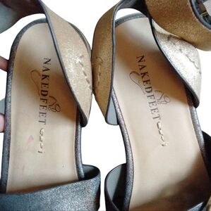 Naked Feet Sandals “Zeke” Metallic Strappy Sandals Silver and Gold Sandals 7.5