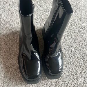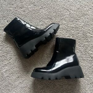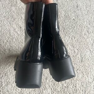 Naked Feet Size 8 Xenus Black Patent Leather Boots Zip-Up Ankle Boots Platform