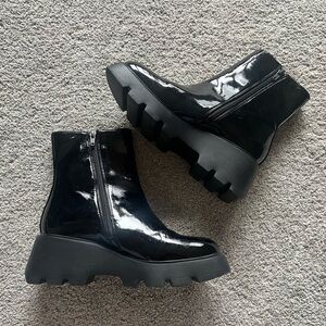 Naked Feet Size 8 Xenus Black Patent Leather Boots Zip-Up Ankle Boots Platform