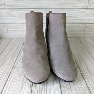 Naked Feet Suede and Leather Booties with Stacked Heel in Gray and Cream Size 6