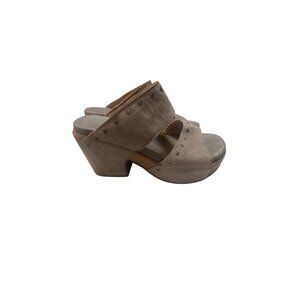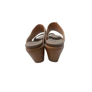 Naked Feet Taupe Open-Toe Studded Leather Wedge Sandals Size 5.5 Women