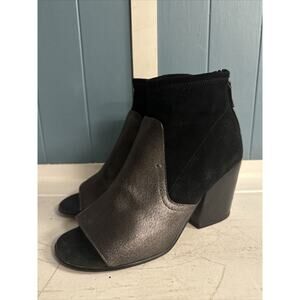 Naked FeetBeta Black Suede Metallic Leather Heeled Booties Chunky Heel Size 8