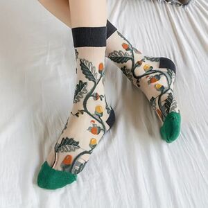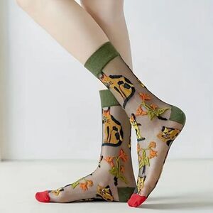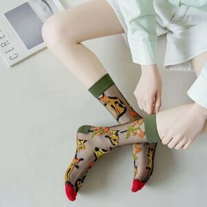 Vintage Embroidered Animal Pattern Socks, Thin Breathable Crystal Knit Fabric, Polyester 95% Spandex 5%, Hand Washable Short Tube Stockings.