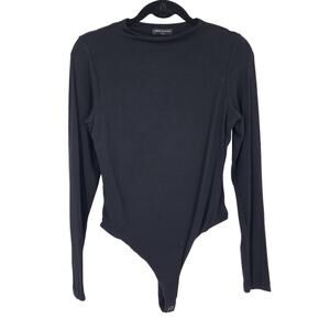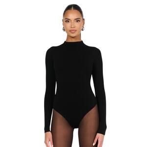 Naked Wardrobe Black Mock Neck Long Sleeve Sculpt Thong Bodysuit Size XL