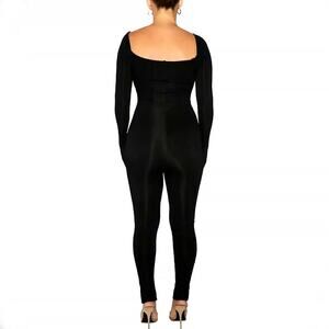 Naked Wardrobe Black NW Long Sleeve Square Neck Full Length Jumpsuit Catsuit M