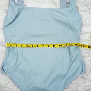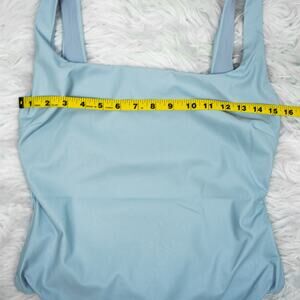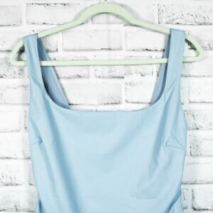 Naked Wardrobe Blue Faux Leather Bodysuit Square Neck Sleeveless Tank Medium