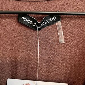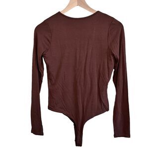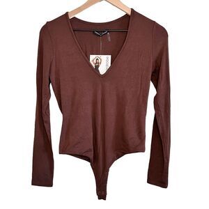 Naked Wardrobe Bodysuit Large Brown V-Neck Long Sleeve Thong Stretch NW-B0125