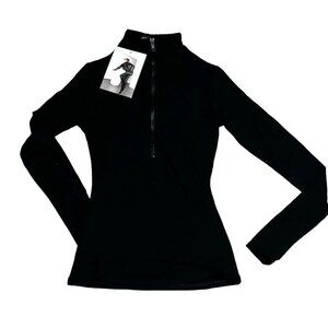 Naked Wardrobe Compression Long Sleeve Half Zip Neck Top Sz Small Womens Black