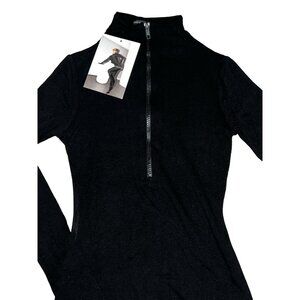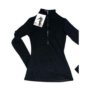 Naked Wardrobe Compression Long Sleeve Half Zip Neck Top Sz Small Womens Black