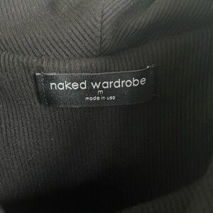 Naked Wardrobe Fold-over Off The Shoulder Ribbed Top in Black Size Medium