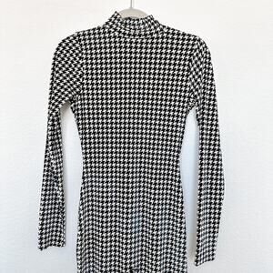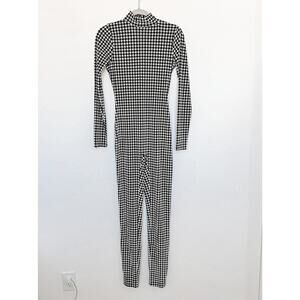 Naked Wardrobe Houndstooth Turtle Neck Long Sleeve Jumpsuit Black White Large