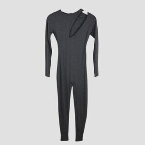 Naked Wardrobe Jumpsuit Catsuit Long Sleeve Front Cutout Gray S