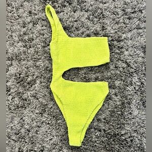 Naked Wardrobe Lime One Shoulder Cutout One Piece Bathing Suit Swimsuit Size S
