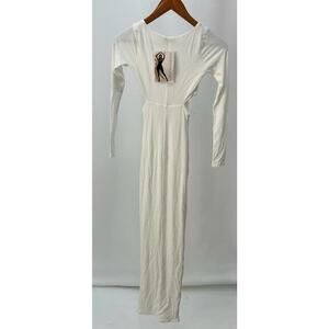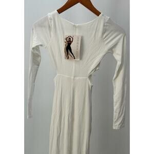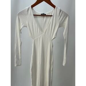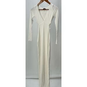 Naked Wardrobe Maxi Dress Long Sleeves Cut Out Sides V-Neck White Size XS NWT