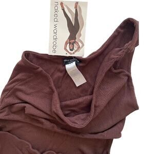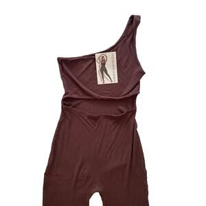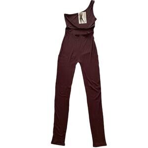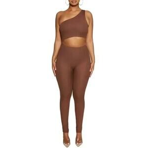 Naked Wardrobe Microrib One-Shoulder Cutout Jumpsuit Brown Size Large